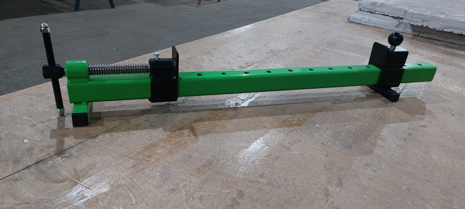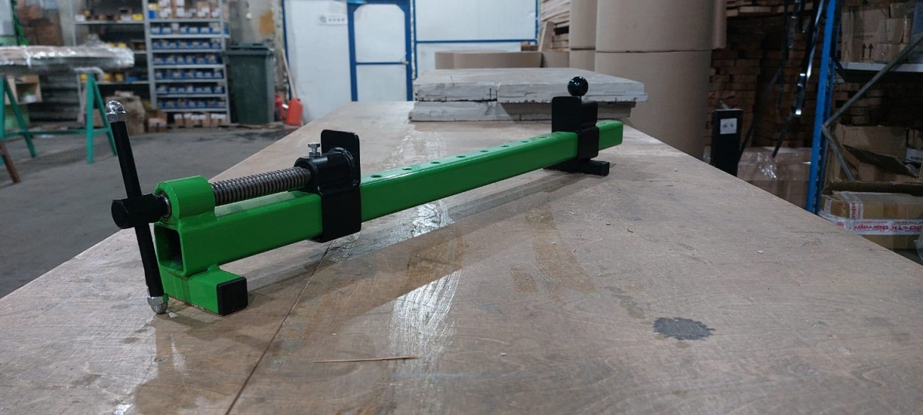 Жесткая конструкция за счет толстых стенок профиля, паралельные фрезерованные плоскости губок, быстрая перестановка заднего упора для нужного размера, трапецивидная резьба обеспечивает нужное давление на заготовку, полимерное антикорразионное покрытие, все эти качества делают этот инструмент идеальным для применения в столярном производстве.