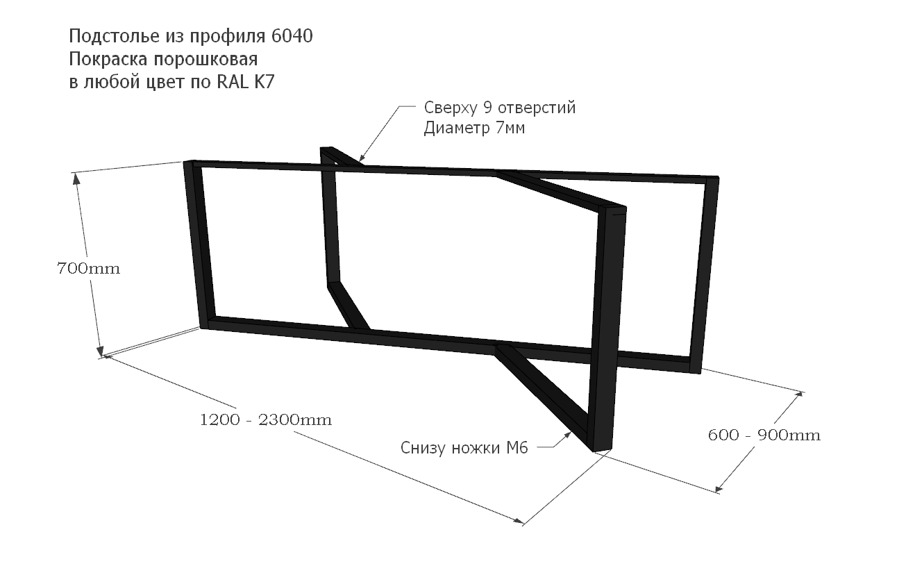 Подстолья выполнены полностью в закрытом исполнении, все углы проварены, трубы