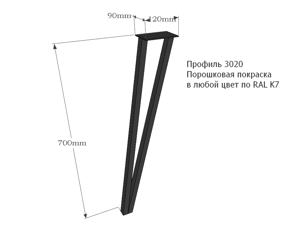 Ножка из профиля 3020. Покрытие - порошковая краска в любой цвет по RAL K7.
