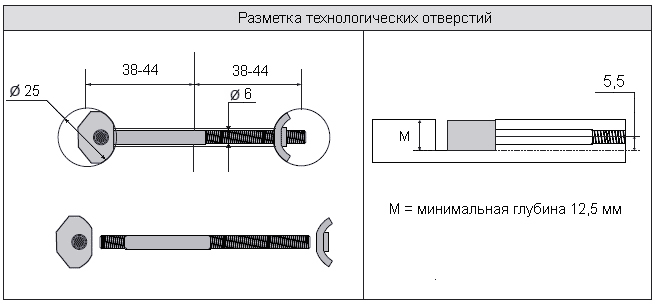 Стяжка выполнена из металла и создает затягивающее усилие достаточное для соединения больших деталей. Эта стяжка по своим функциональным возможностям аналогична стяжкам Zipbolt 10.520 и 10.700. В отличие от них она имеет съемный редуктор, что позволяет соединять детали без фрезеровки паза под шпильку. Кроме того, если отверстия под шпильку сверлить без зазора, то можно выполнять соединение без установки шкантов, так как шток стяжки одновременно будет являться направляющей. В ней уменьшена толщина редуктора, минимальная глубина посадки этой стяжки составляет 12,5 мм - это определяет минимальную толщину соединяемых деталей.