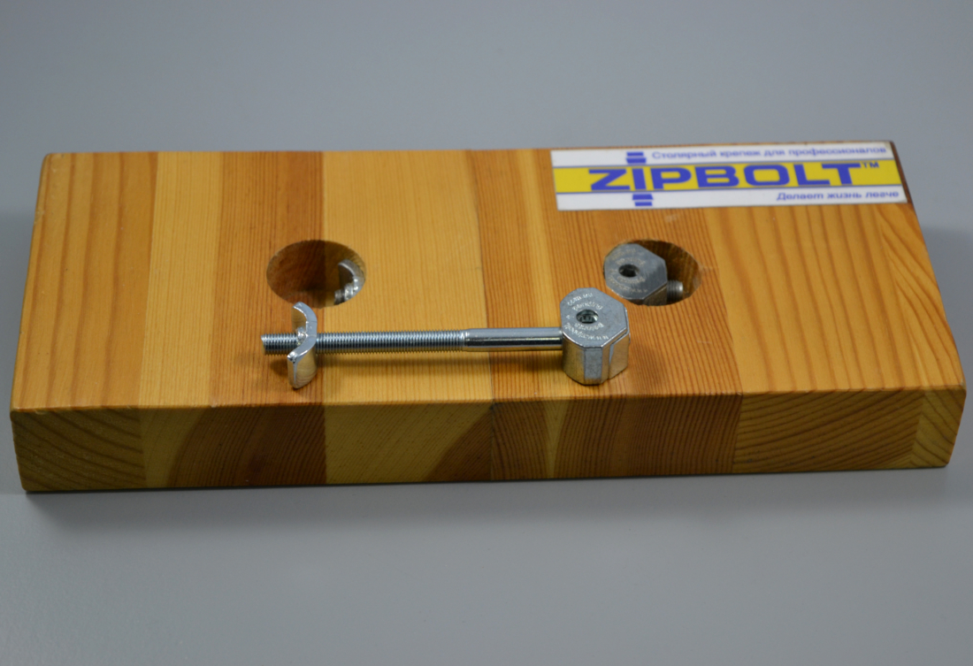 Zipbolt 10.820 предназначен для стыковки в одной плоскости деталей из дерева или ДСП. Он может быть использован для быстрого и надежного соединения встык деталей кухонных столешниц.