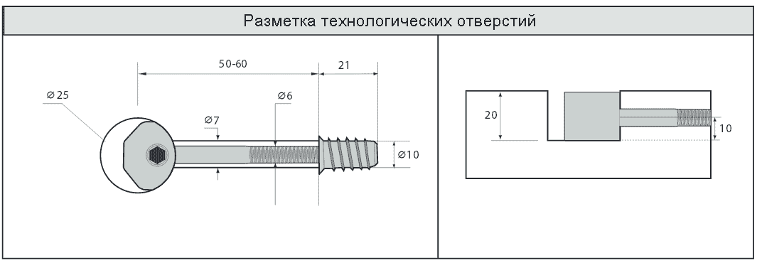 Футорка позволяет использовать данную стяжку при работе с ДСП, МДФ и мягкими породами древесины, а наличие резьбового соединения делает возможным производство сборно-разборных изделий.