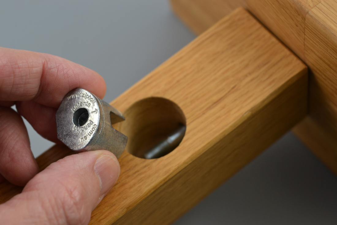 Прямая шурупная стяжка используется как крепёж для соединения деталей мебели по торцам, а также для сращивания длинномерных деревянных изделий.